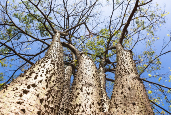 However, in the colder months when the tree’s outer stems and leaves fall away, a darker side is revealed. True to its name, the tree’s central stem resembles a club shaped walking stick adorned with leaf scars shaped like half-moon crescents and ringed with crownlike circles of sharp thorns – ghoulish decorations making it duly suited to a spooky and menacing character, if not the Devil himself.