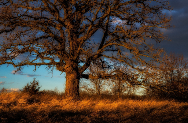 A true spirit of the Midwestern pioneers, the towering burr oak spreads its immense branches to guard over the vast expanses of the American prairies.