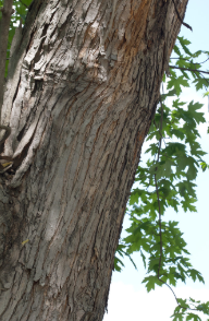Bark: Young bark is smooth and gray and eventually develops long, wide strips that turn upward at the ends as the tree ages.