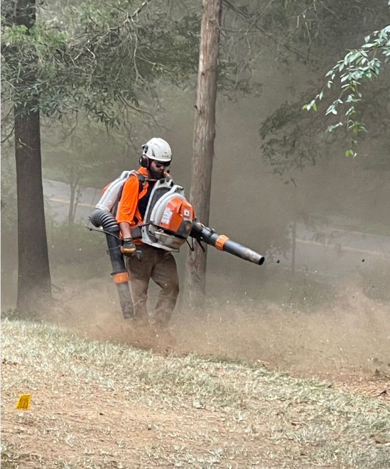 • Man using a blower