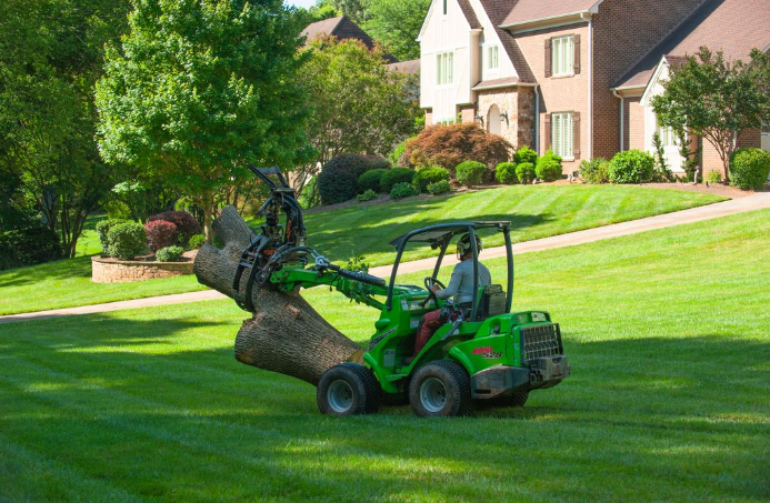 • Man in heavy machinery pruning a tree